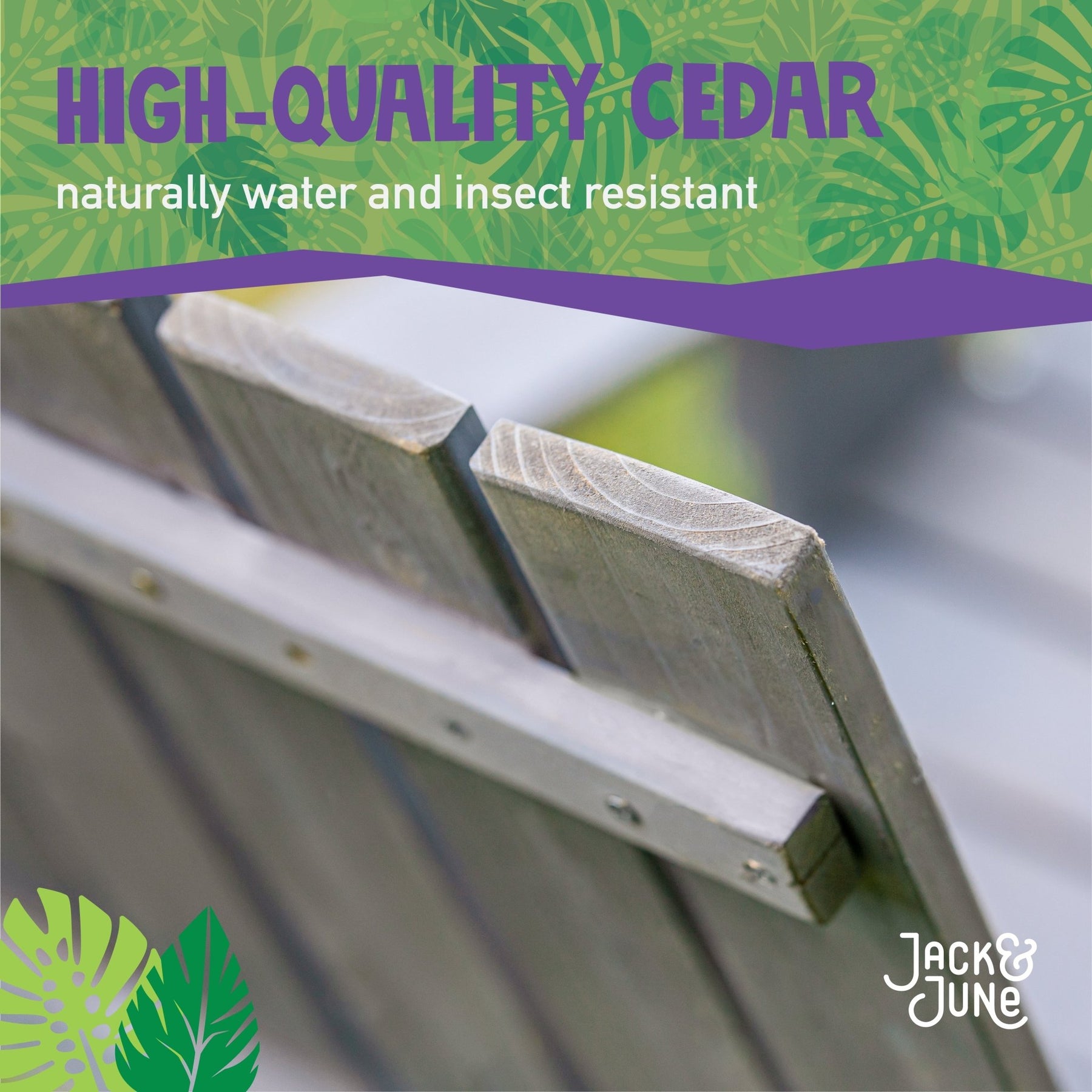 Jack & June Adult Adirondack Chair – classic outdoor wooden seating with wide armrests, contoured back, and durable construction for backyard relaxation.
