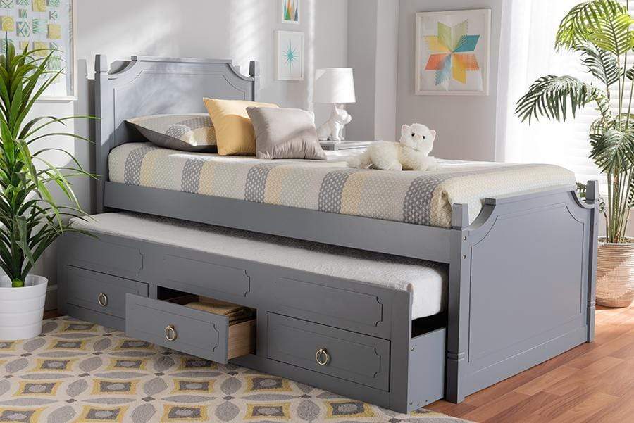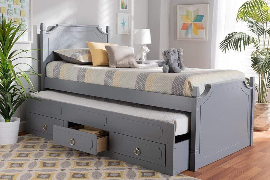 Mariana Traditional Transitional Grey Finished Wood Twin Size 3-Drawer Storage Bed with Pull-Out Trundle Bed