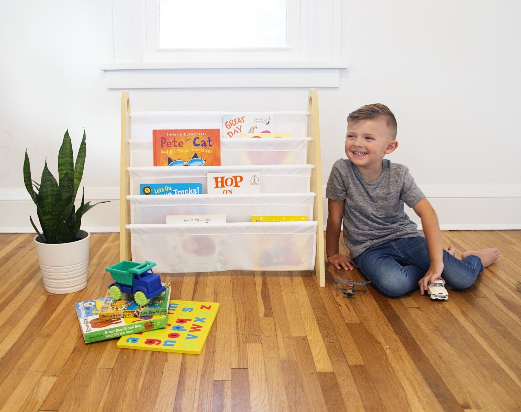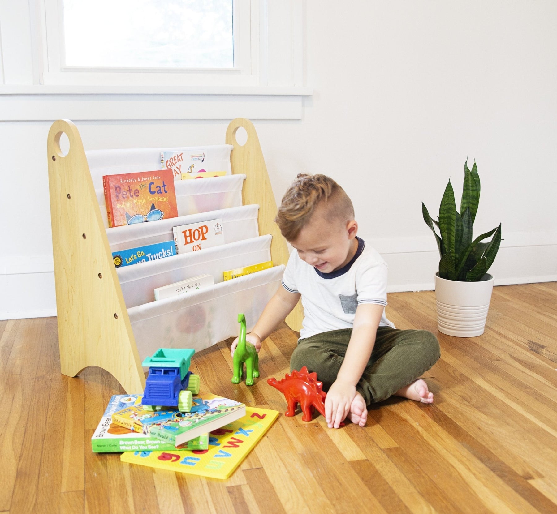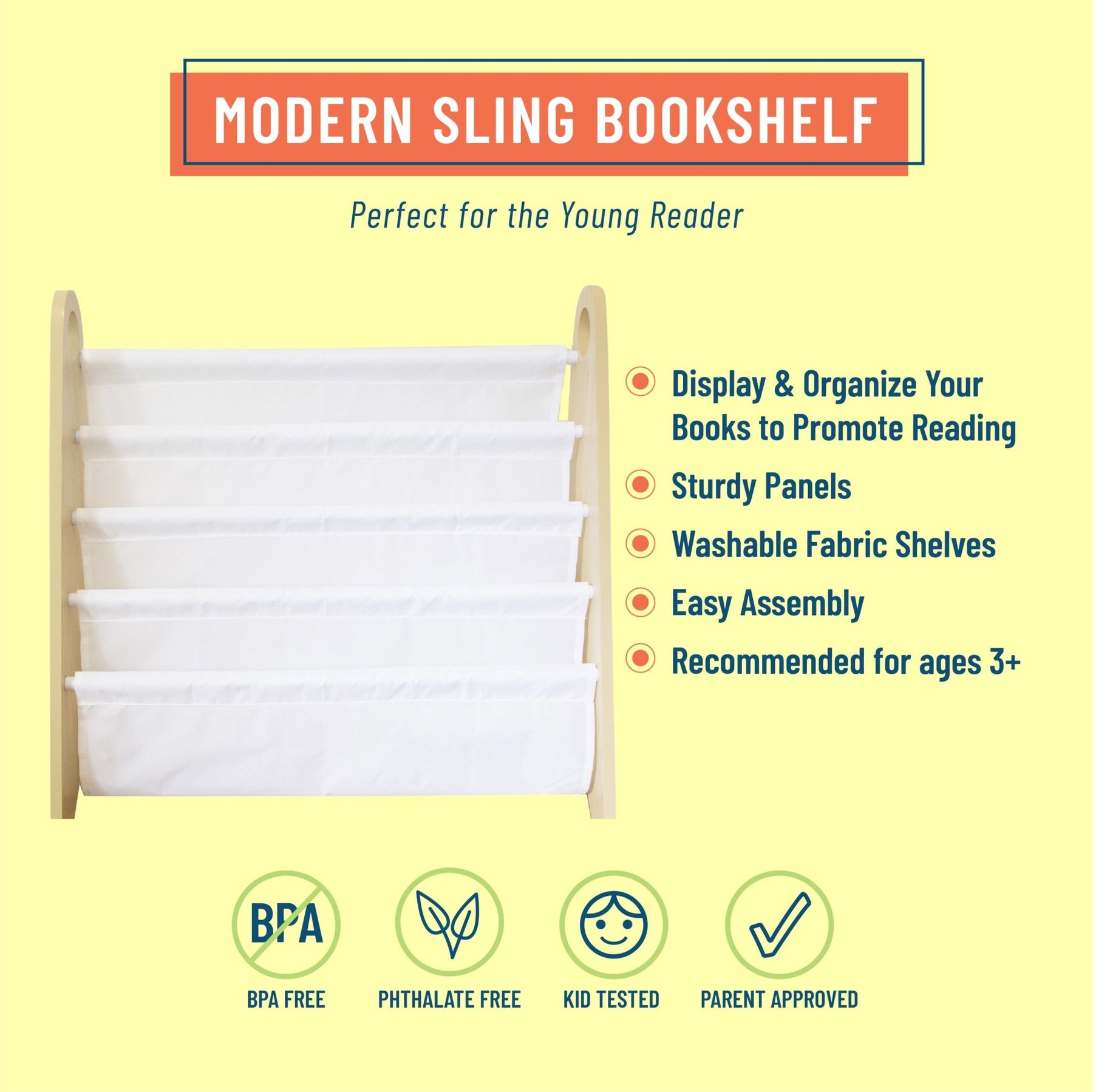 Modern Sling Bookshelf - Natural w/ White