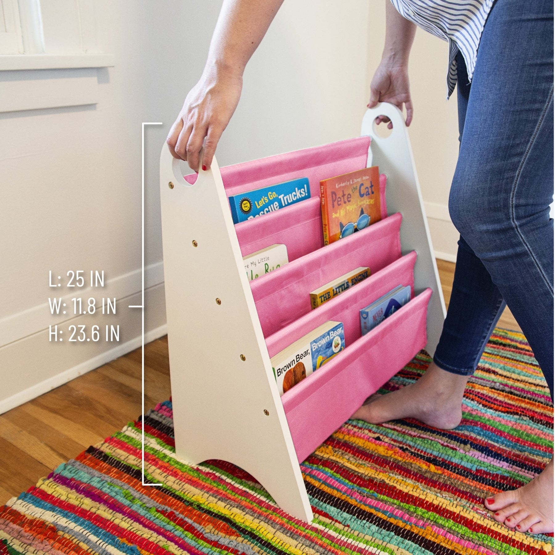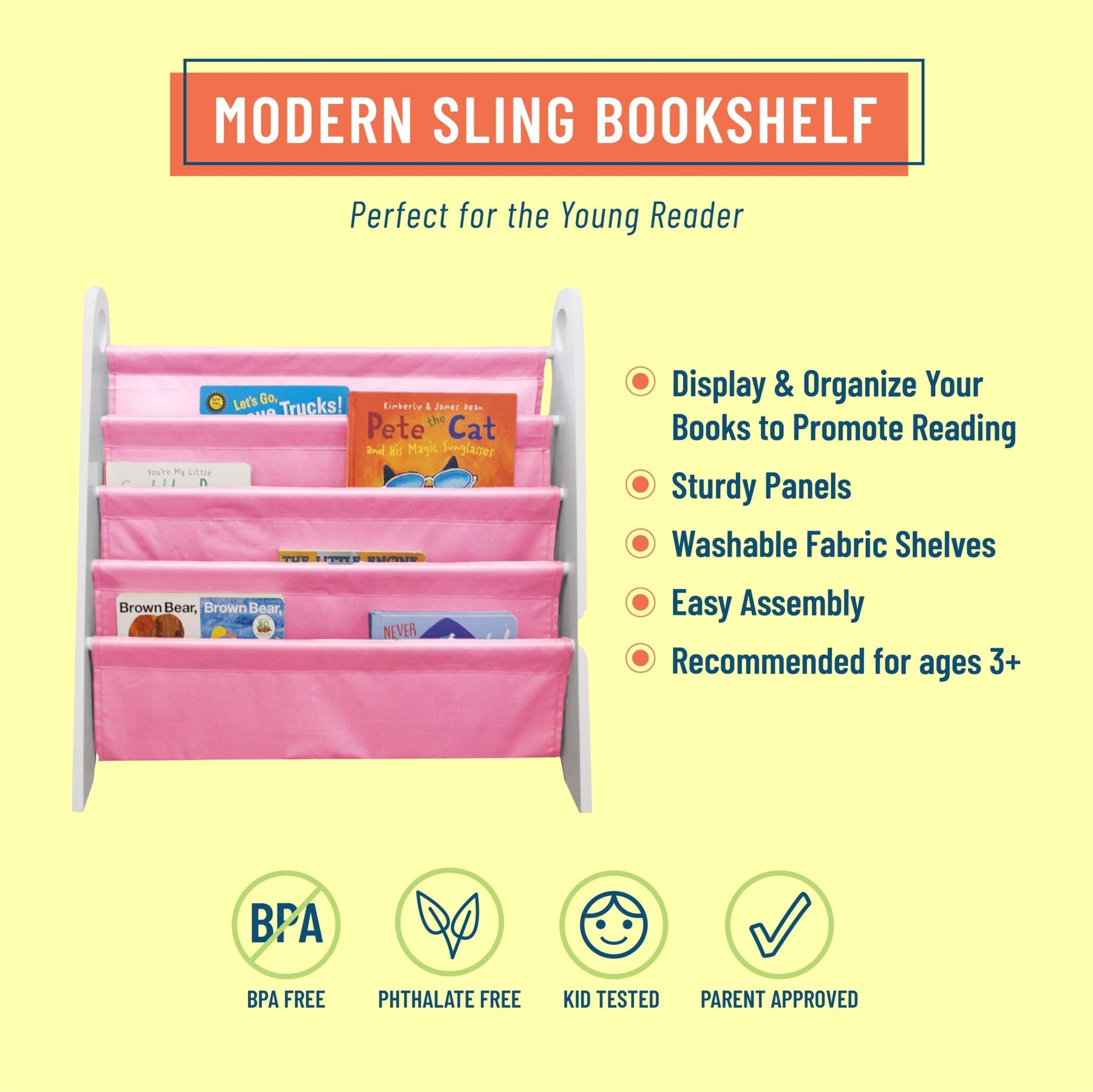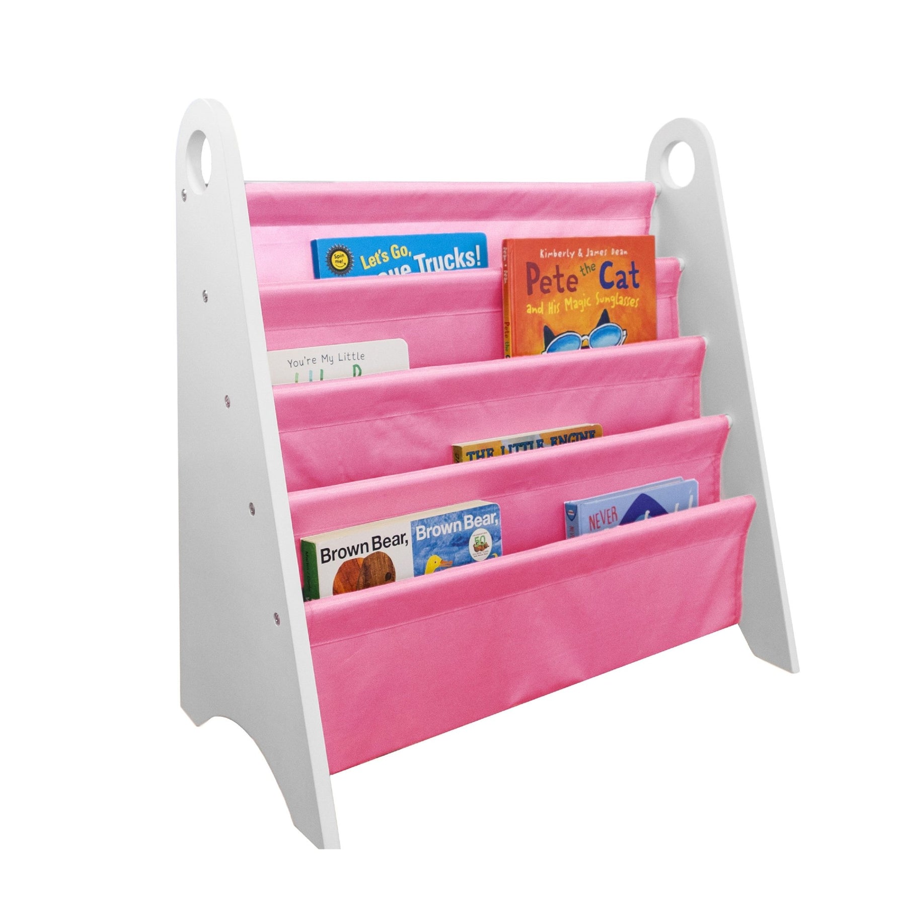 Modern Sling Bookshelf- White w/ Pink