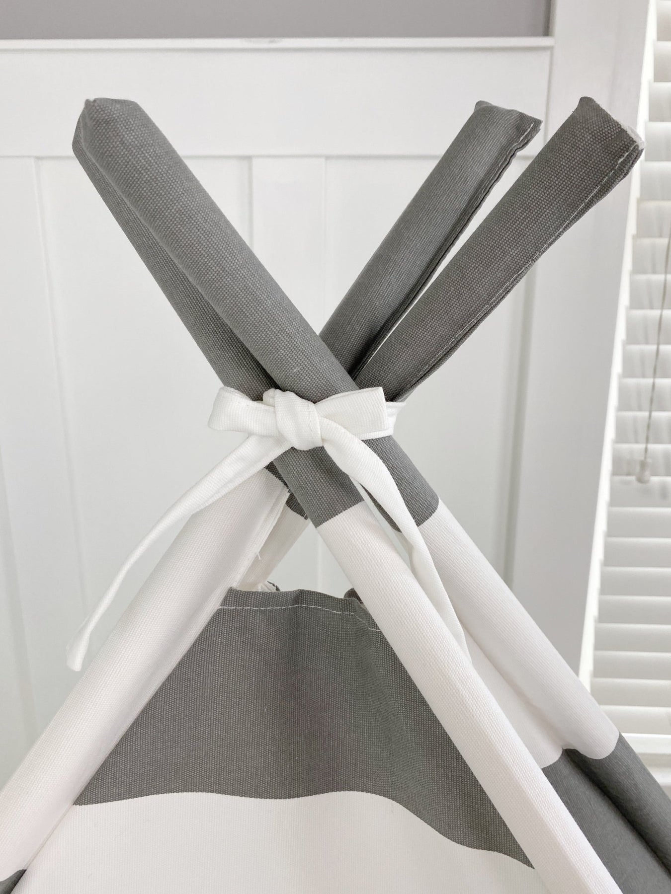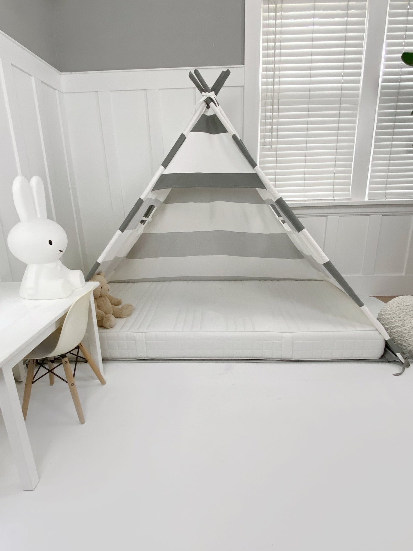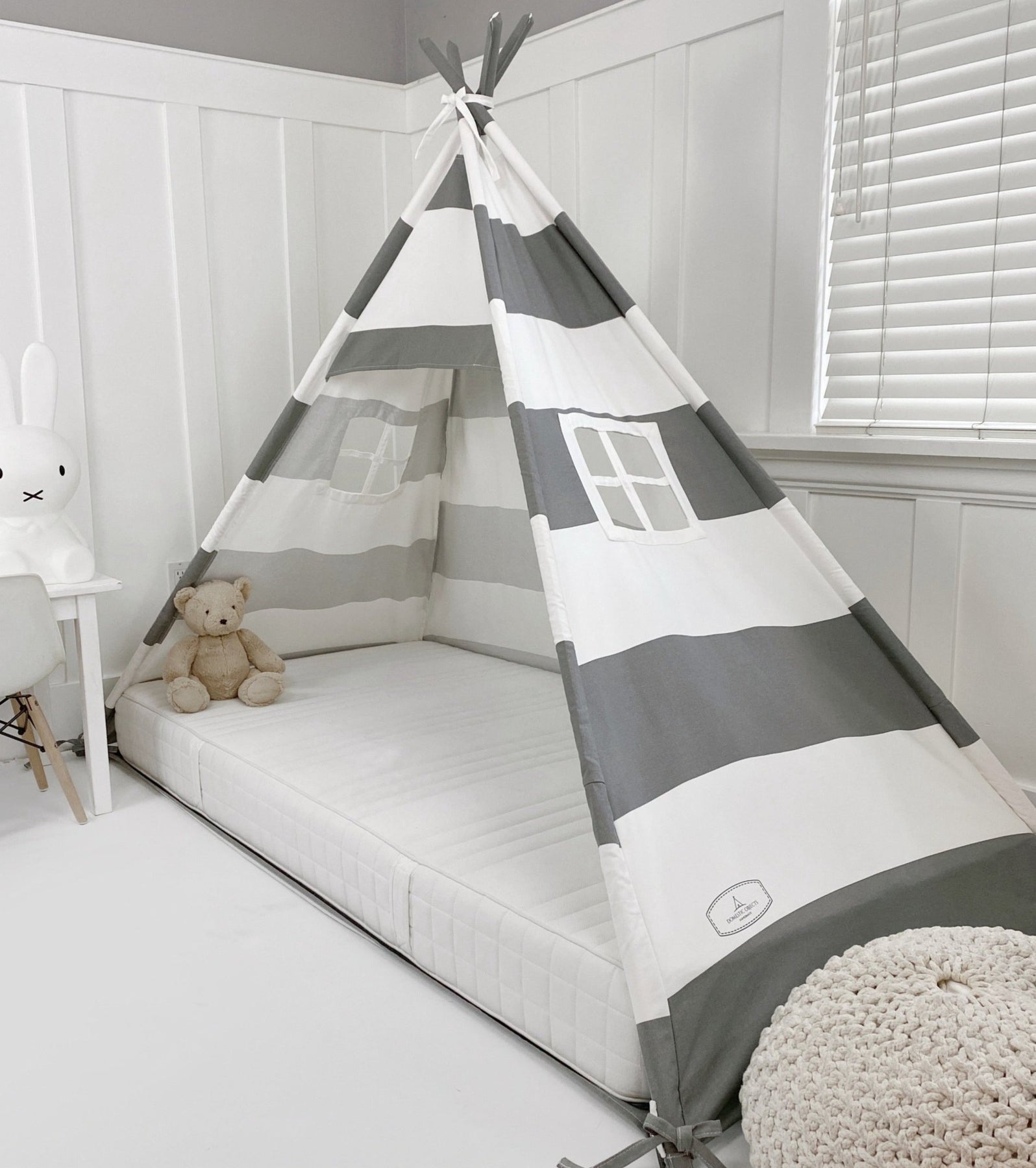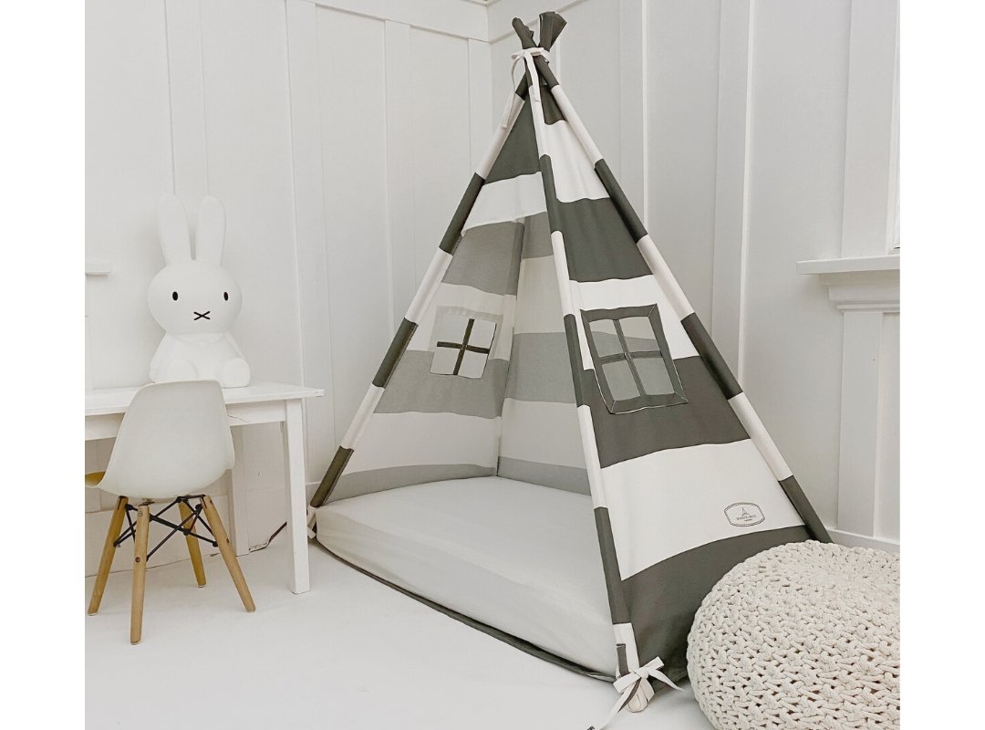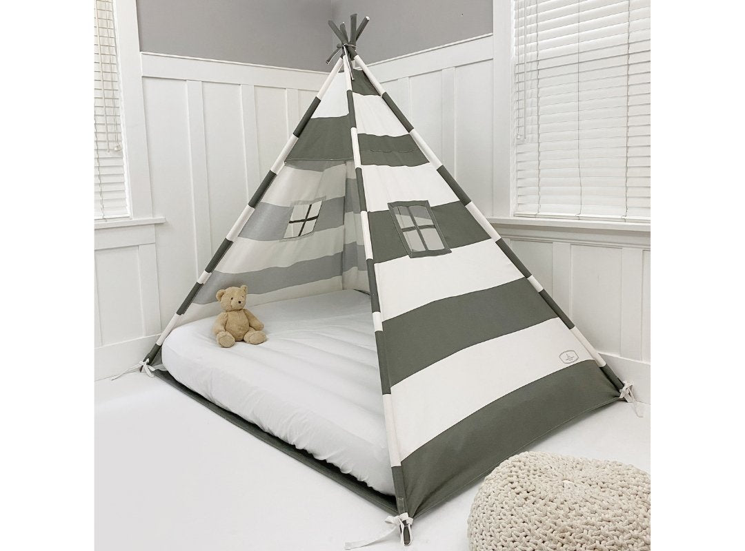 Play Tent Canopy Bed in Grey and White Stripe