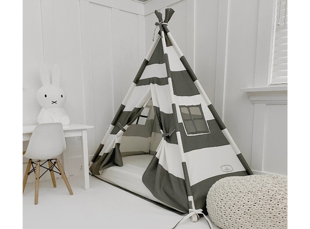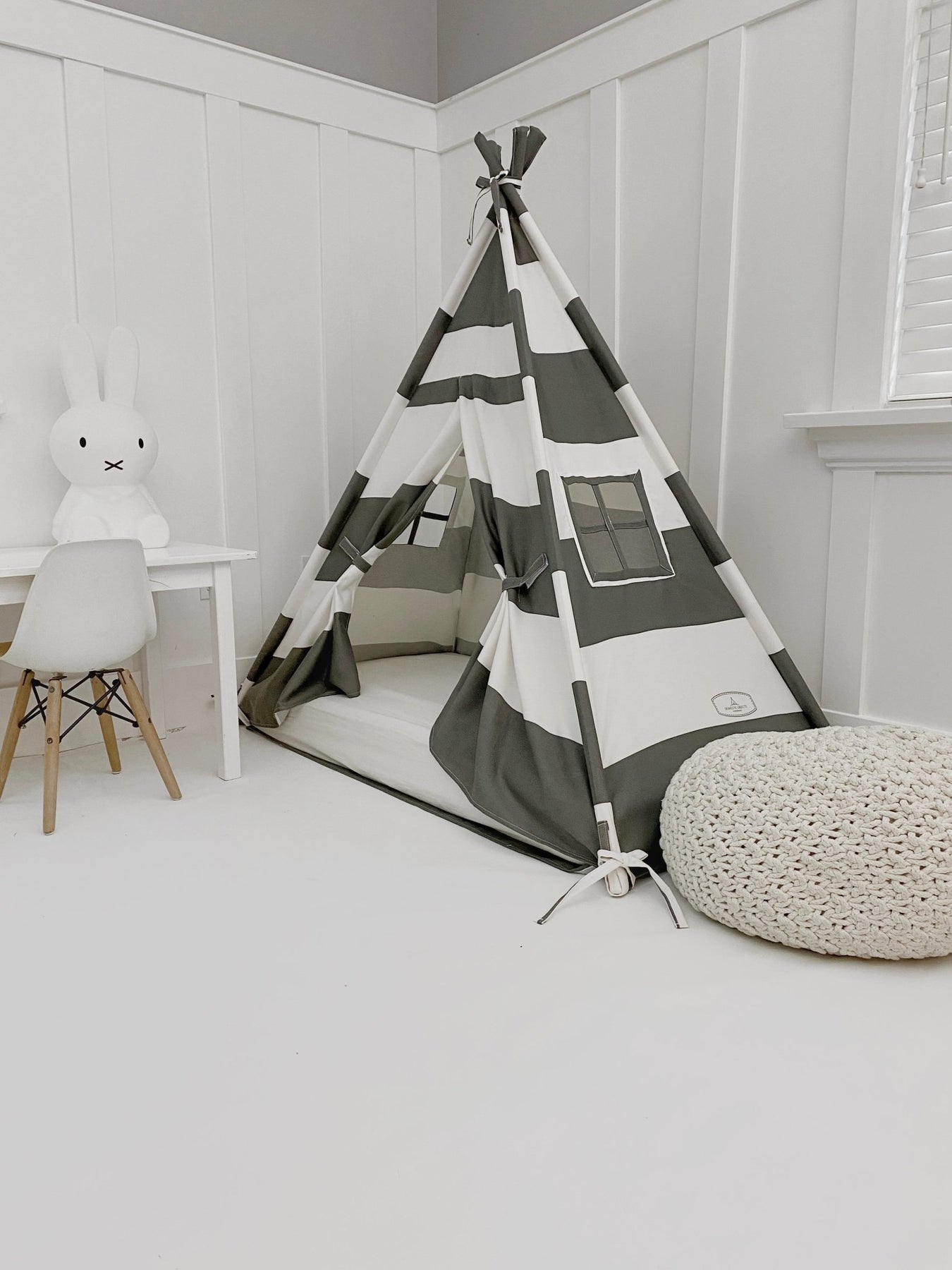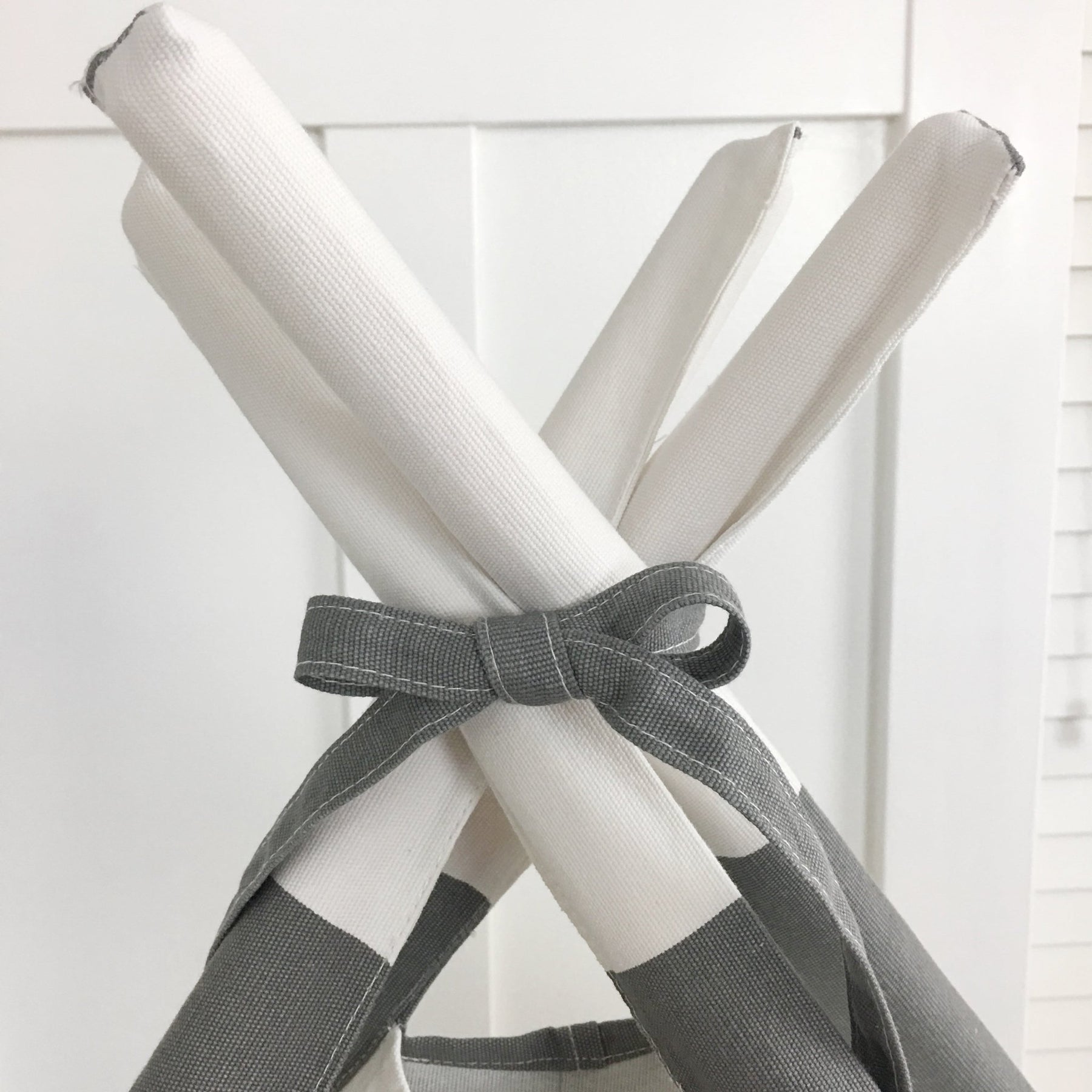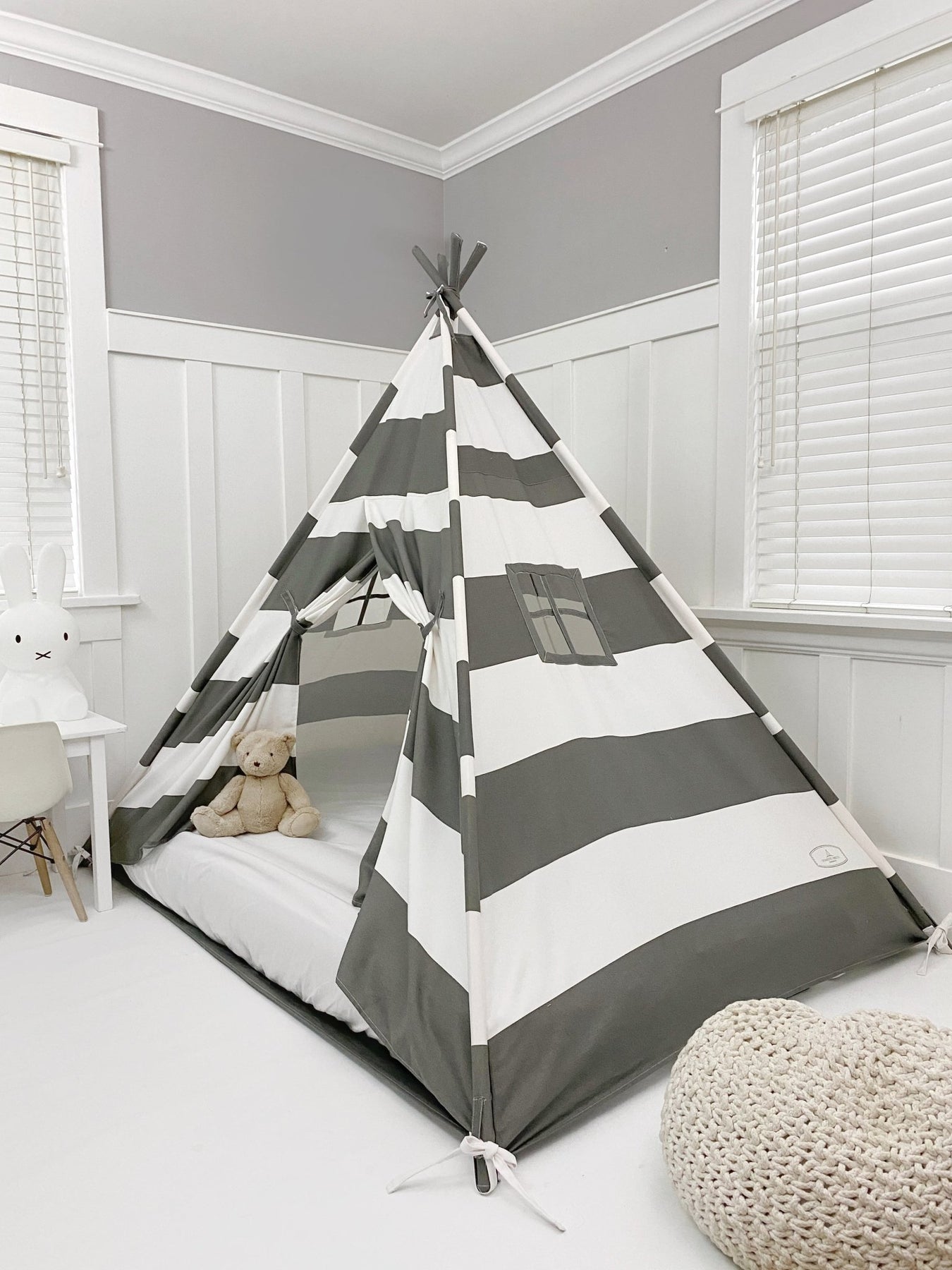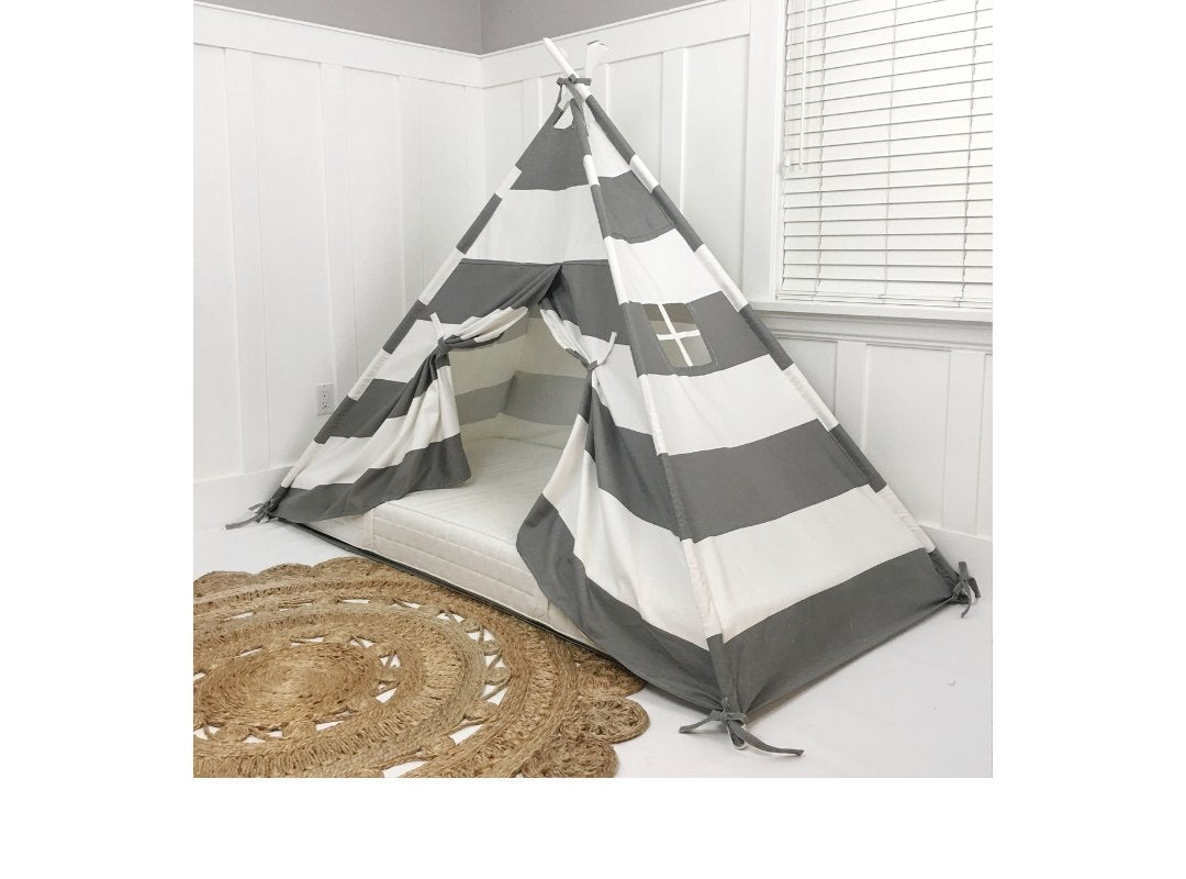 Play Tent Canopy Bed in Grey and White Stripe WITH Doors