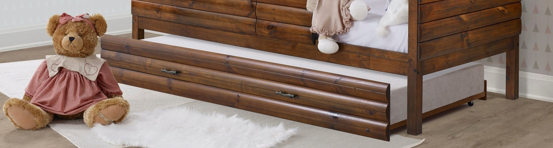 Log Cabin Trundle Rustic Walnut & Rustic Silver