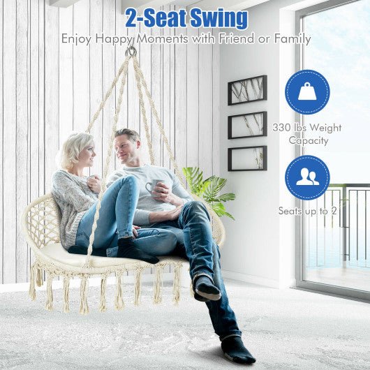 2 Person Hanging Hammock Chair with Cushion Macrame Swing