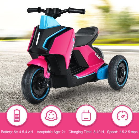 6V 3 Wheel Toddler Ride-On Electric Motorcycle with Music Horn-Pink
