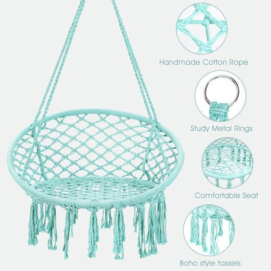 Hanging Macrame Hammock Chair with Handwoven Cotton Backrest-Turquoise