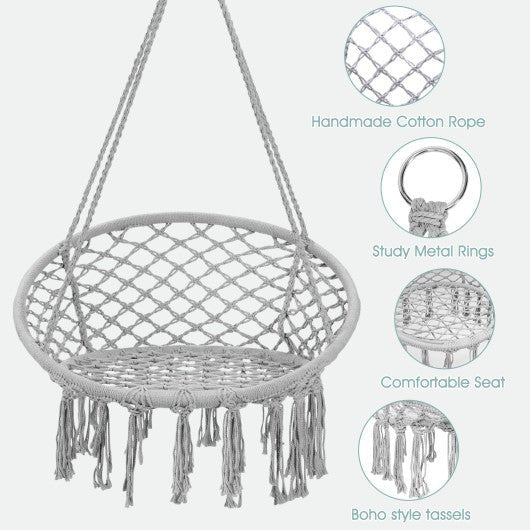 Hanging Macrame Hammock Chair with Handwoven Cotton Backrest-White