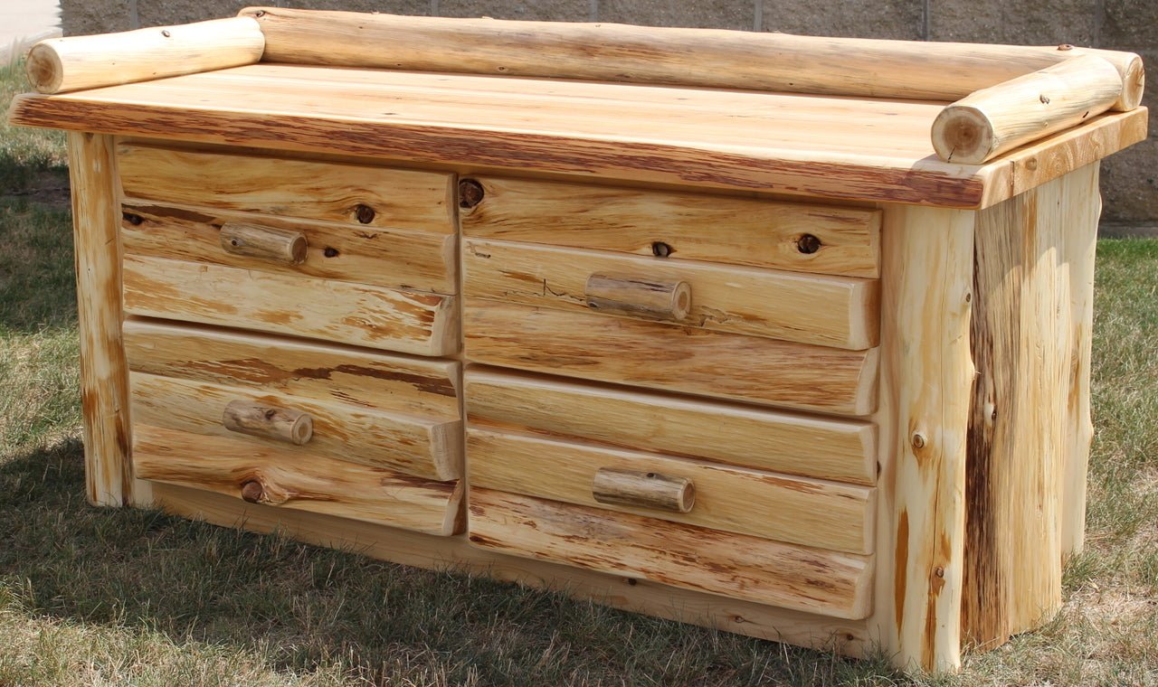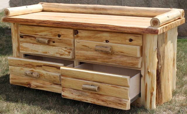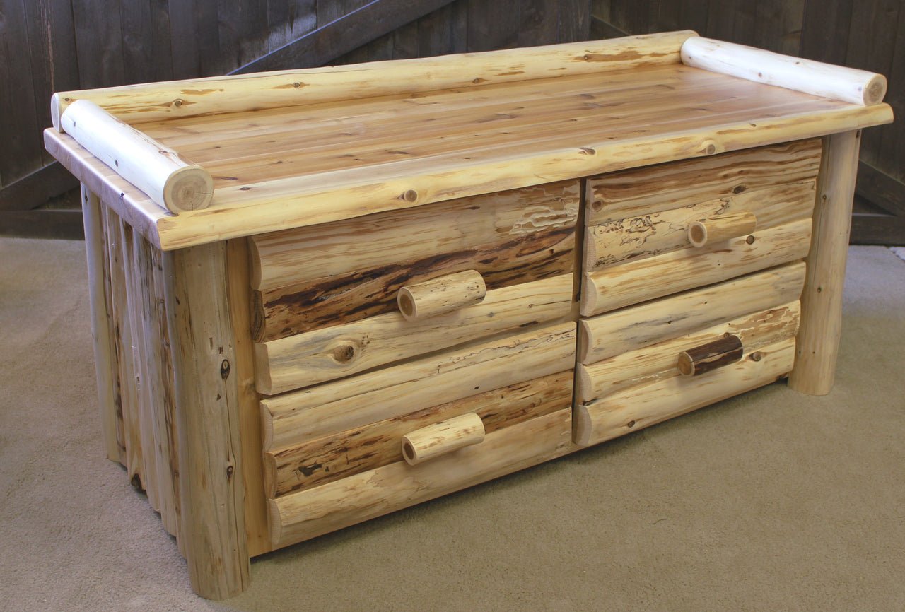 Hand Peeled Cedar Log 4 Drawer Deacons Bench
