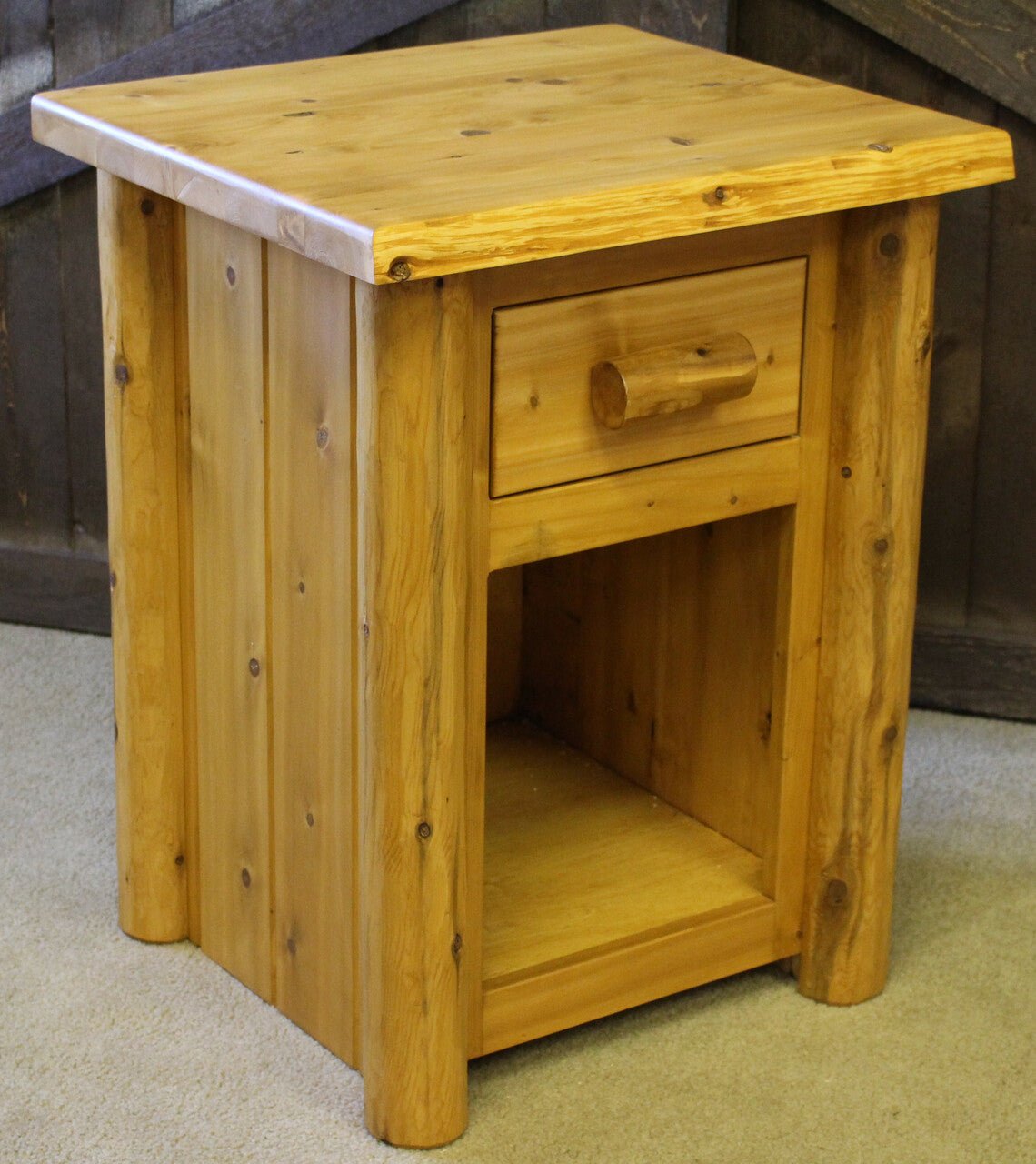 Hand Hewn Cedar Log 1 Drawer Night Stand