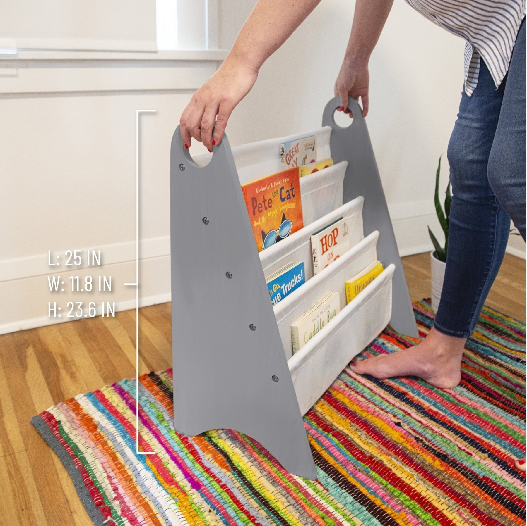 Modern Sling Bookshelf - Gray w/ White