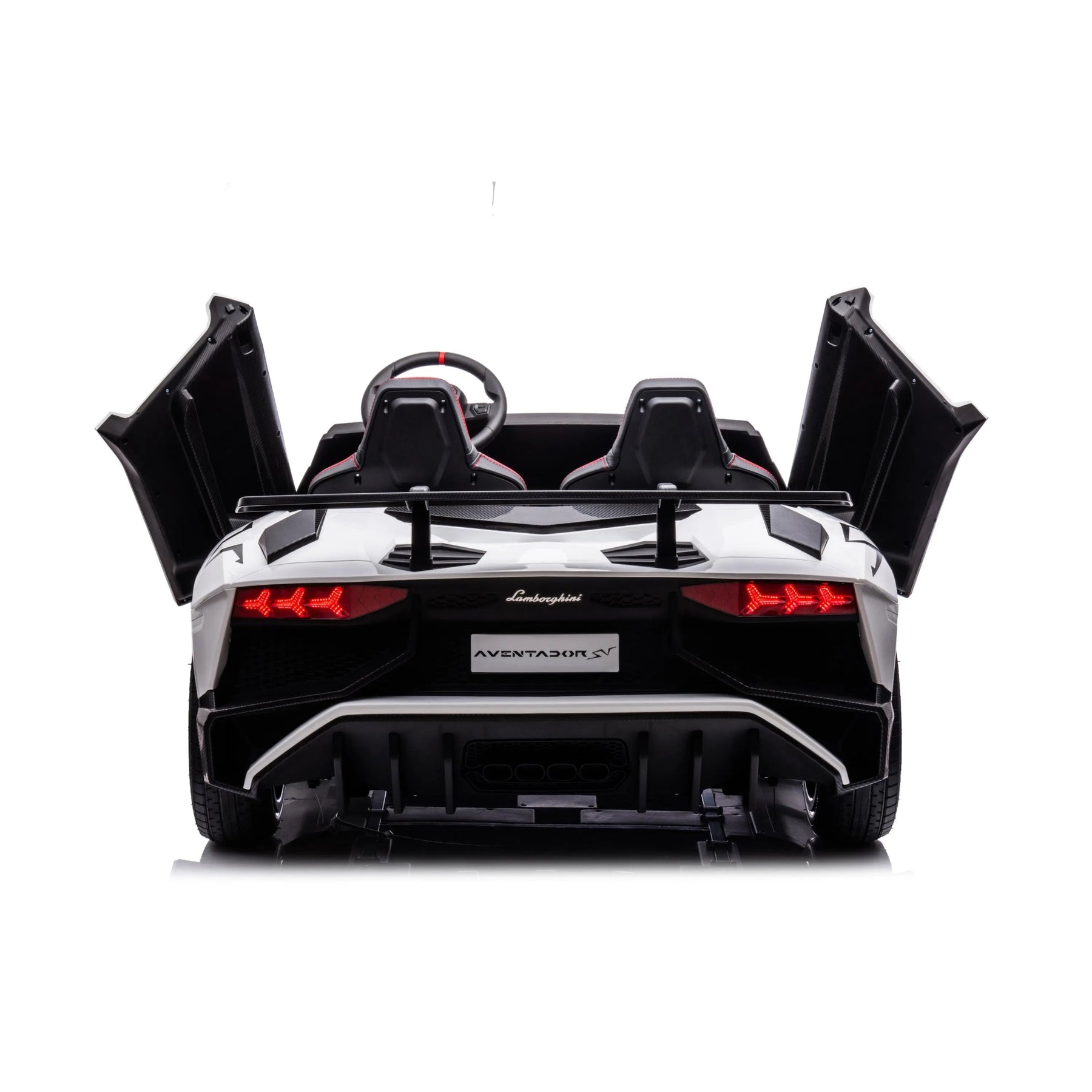 White 24V Lamborghini Aventador 2-Seater Kids Ride-On Car with Advanced Brushless Motor and Differential – Realistic Design, High-Speed Fun, and Luxury Style.
