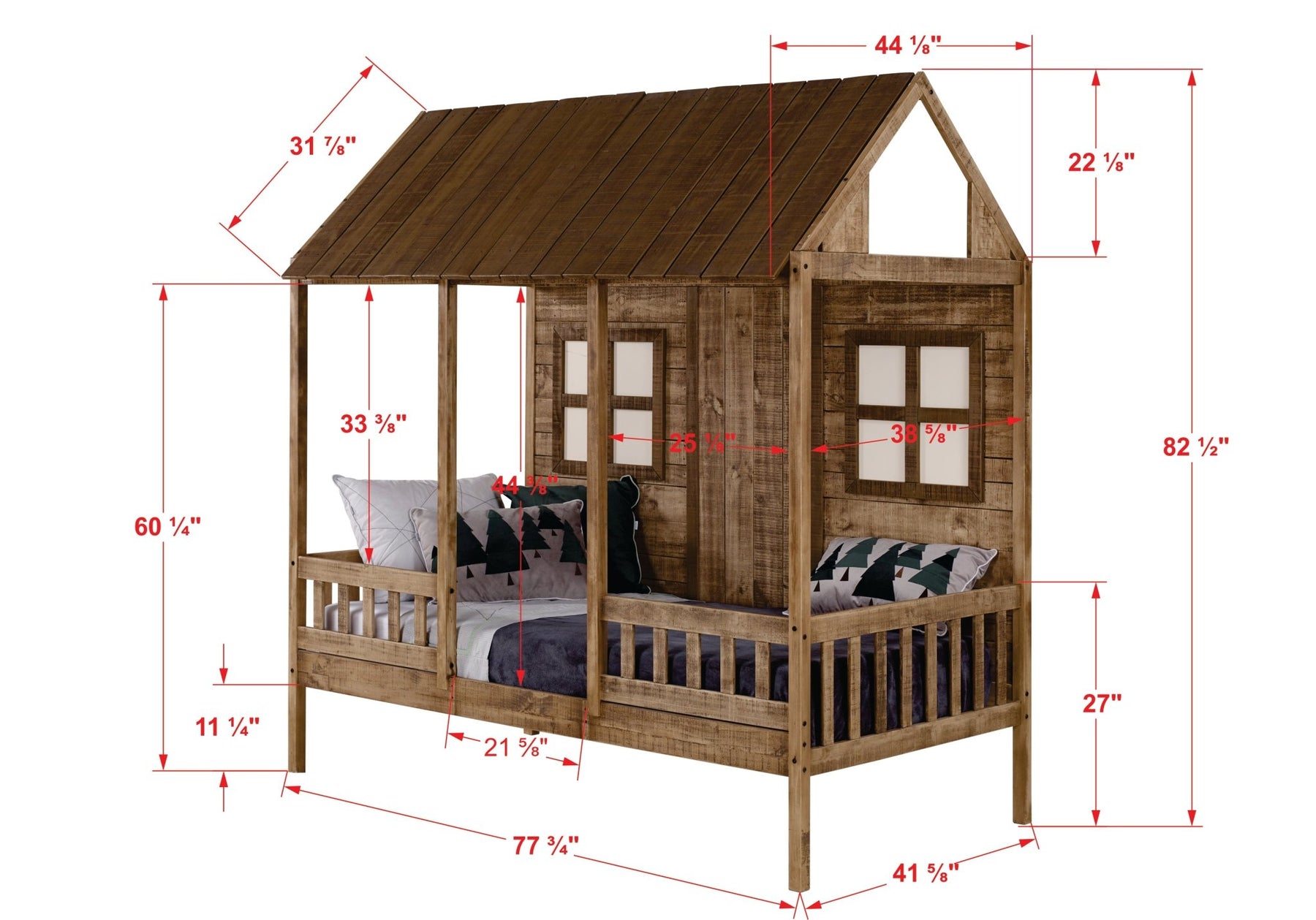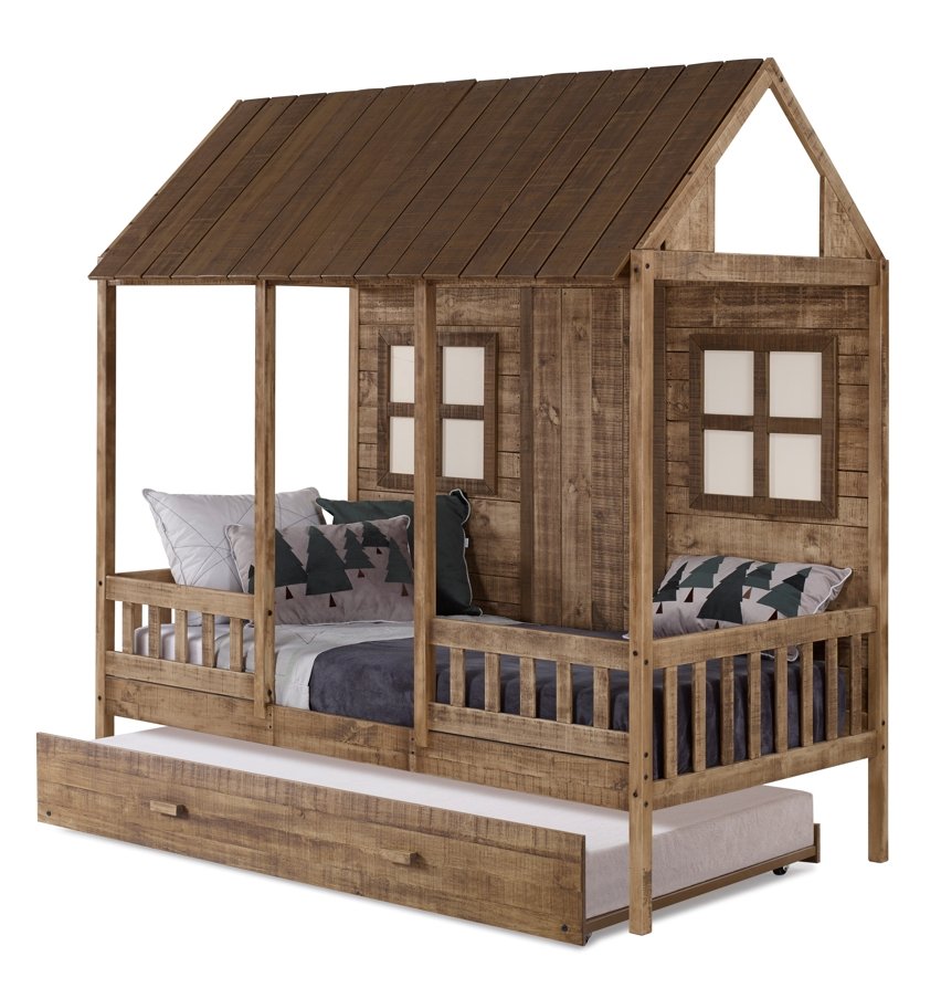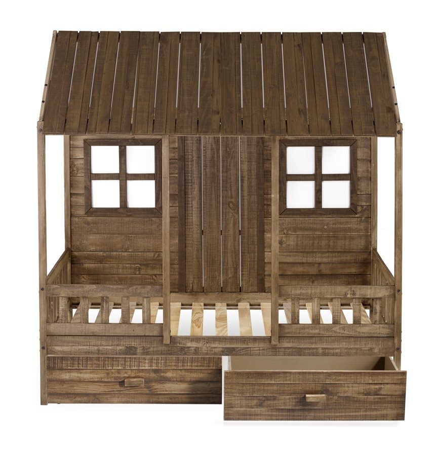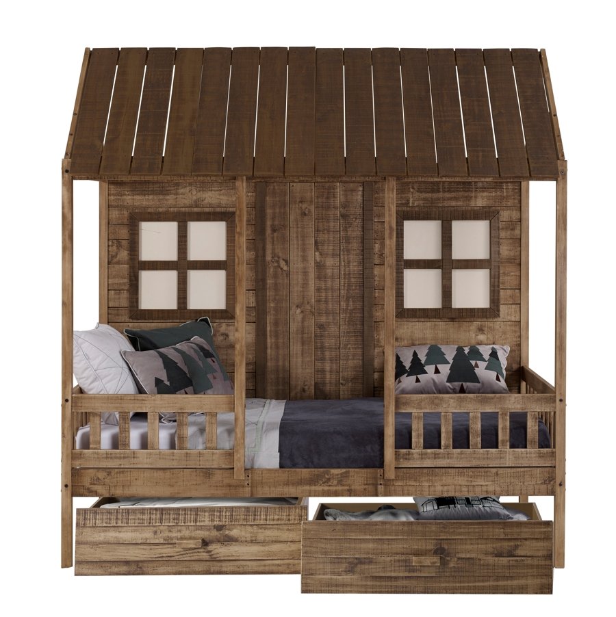 Twin Front Porch Low Loft In Rustic Driftwood Finish
