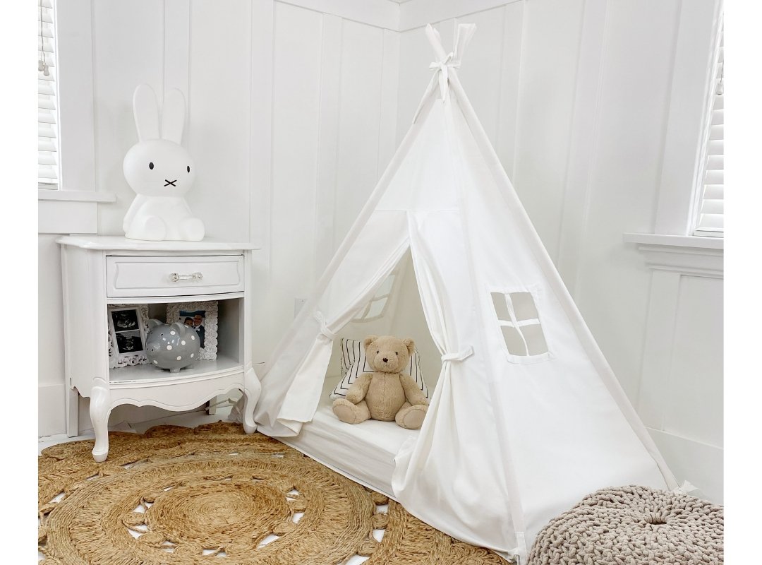 Play Tent Canopy Bed in Cream Canvas with Doors