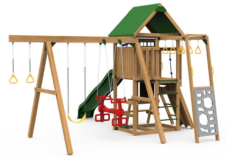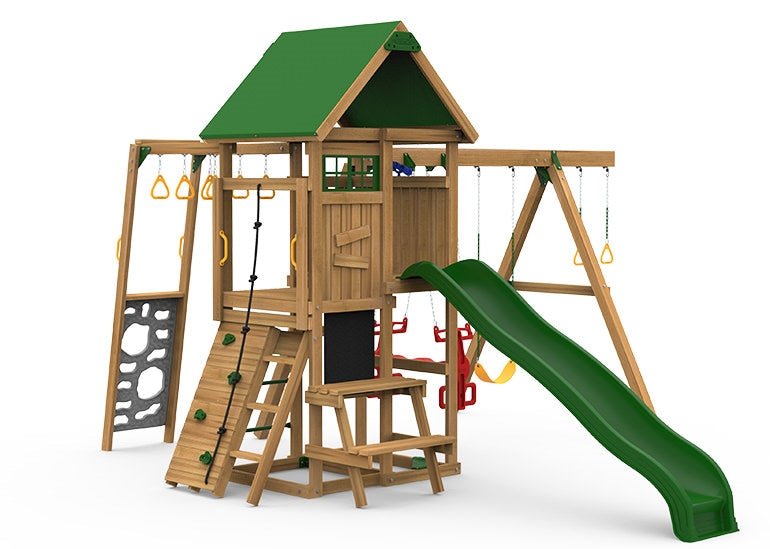 The lumber used is a treated pine, made from a selected grade of premium lumber and harvested from sustainable forests to ensure your swing set is not only high quality and very durable but also eco-friendly. Please feel free to visit this link: Lumber, tools & assembly.