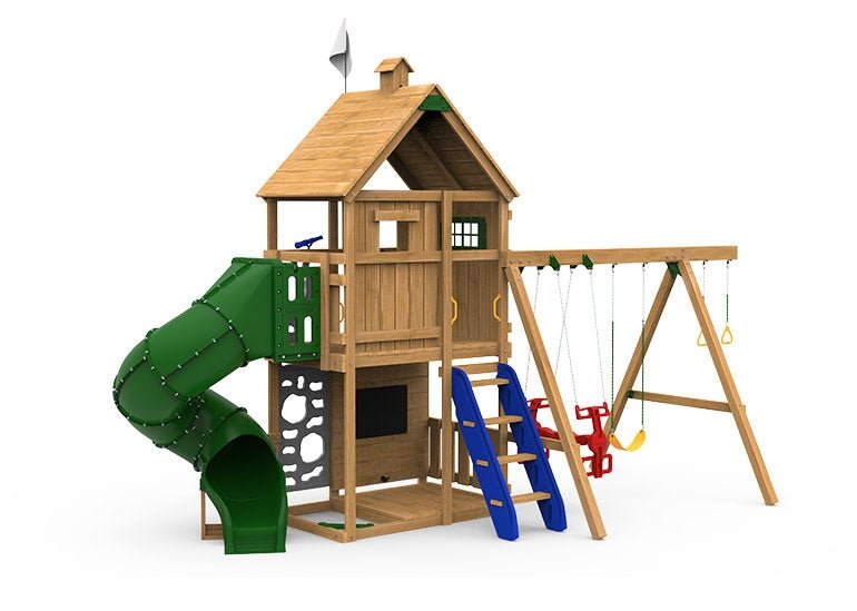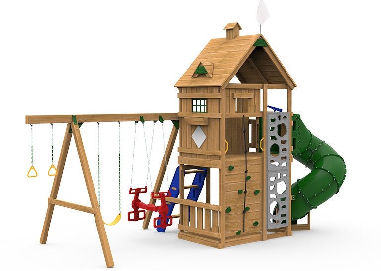 The difference would be that the Factory Built playsets are built at the facility (there would still be some light assembly required once delivered) and it would include the post and beams. Build it Yourself playset kits include all the hardware but the lumber would be purchased separately at a lumberyard.