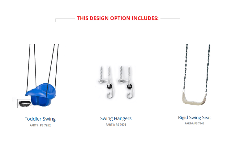 Swing set components including a toddler swing, swing hangers, and a rigid swing seat
