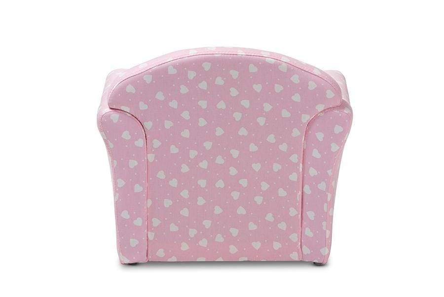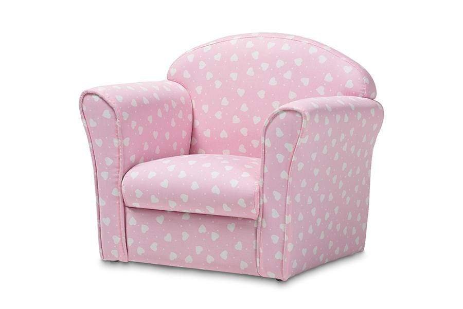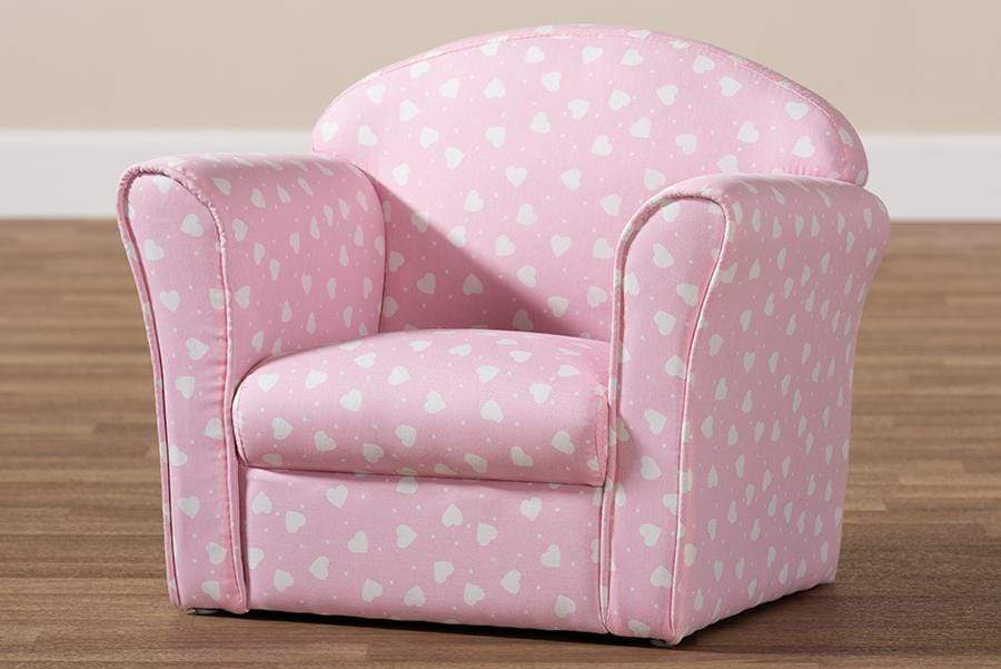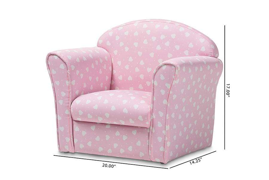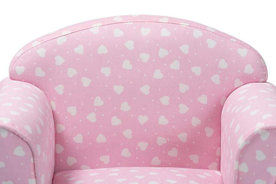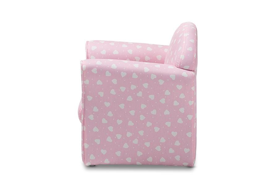Erica Modern and Contemporary Pink and White Heart Patterned Fabric Upholstered Kids Armchair