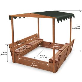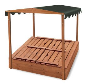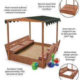 Covered Convertible Cedar Sandbox with Canopy and Two Bench Seats