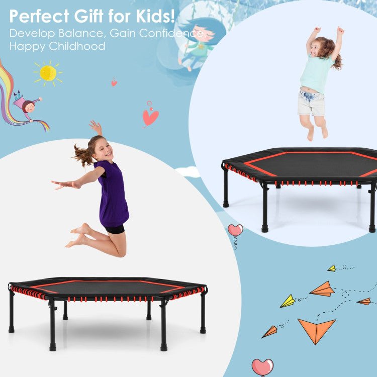 50 Inch Hexagonal Fitness Trampoline Exercise Rebounder with Pad-Red