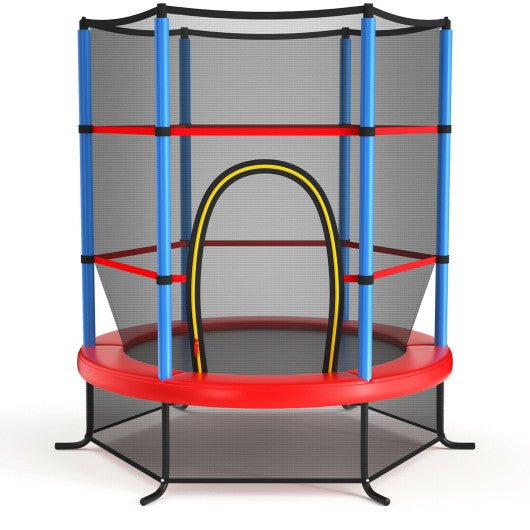 55 Inch Kids Recreational Trampoline Bouncing Jumping Mat with Enclosure Net-Navy