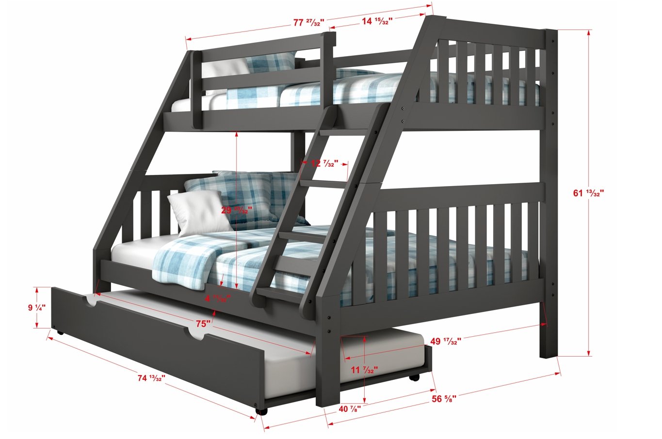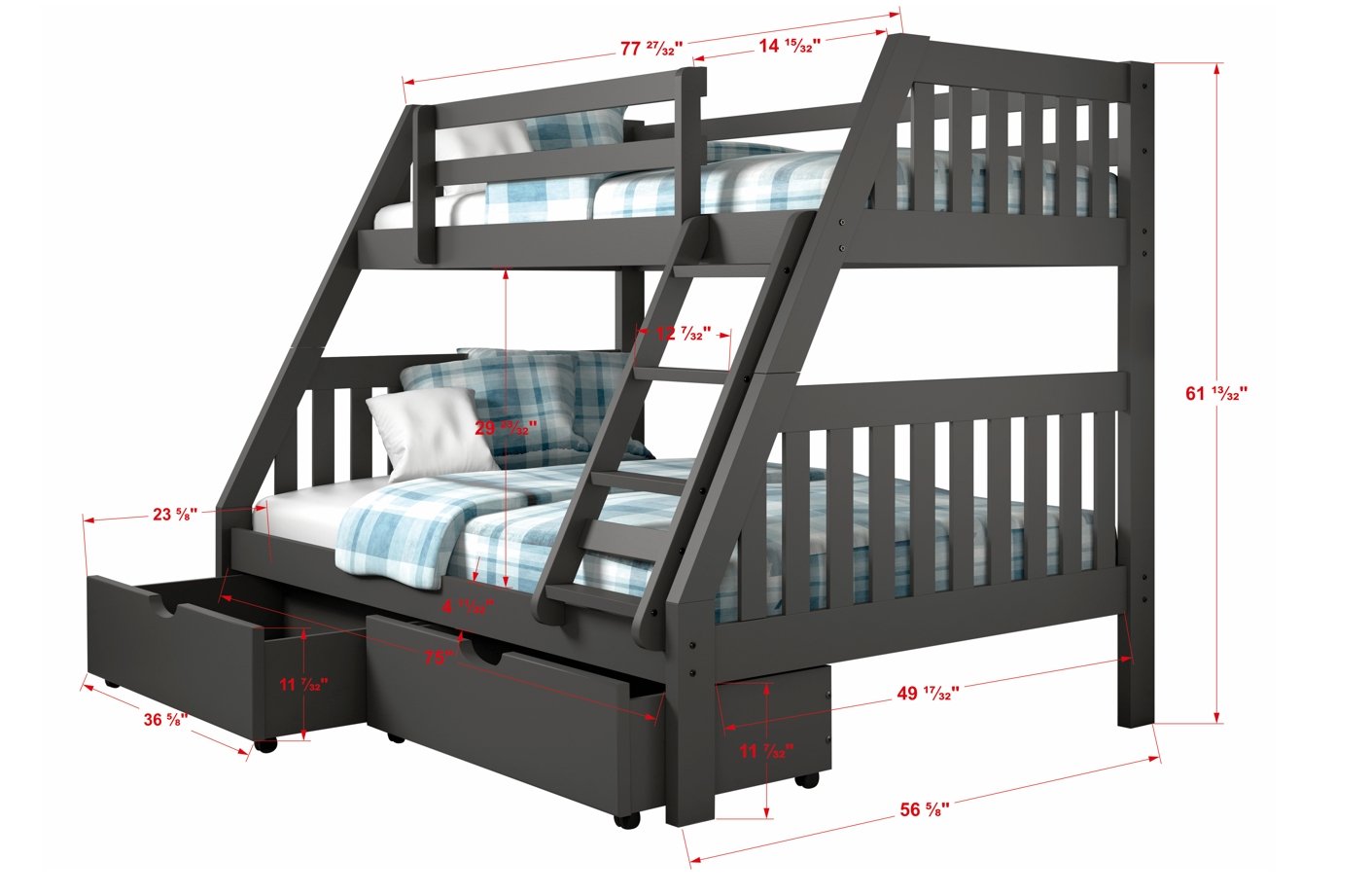 Twin/Full Mission Bunkbed Dark Grey