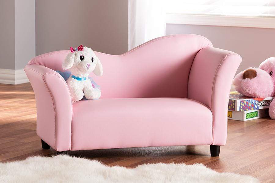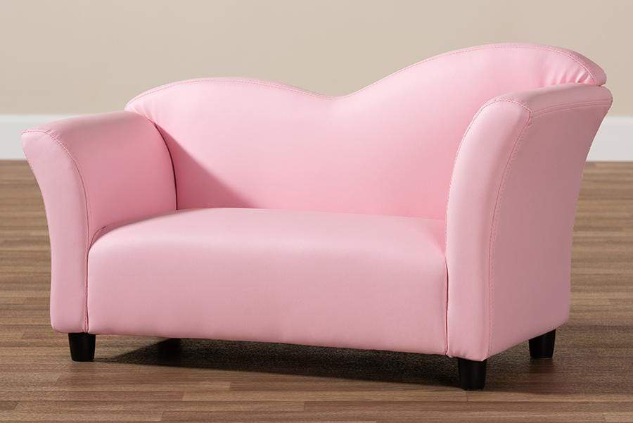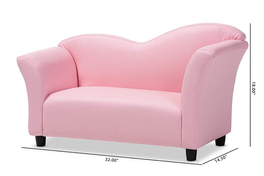 Felice Modern and Contemporary Pink Faux Leather Kids 2-Seater Loveseat