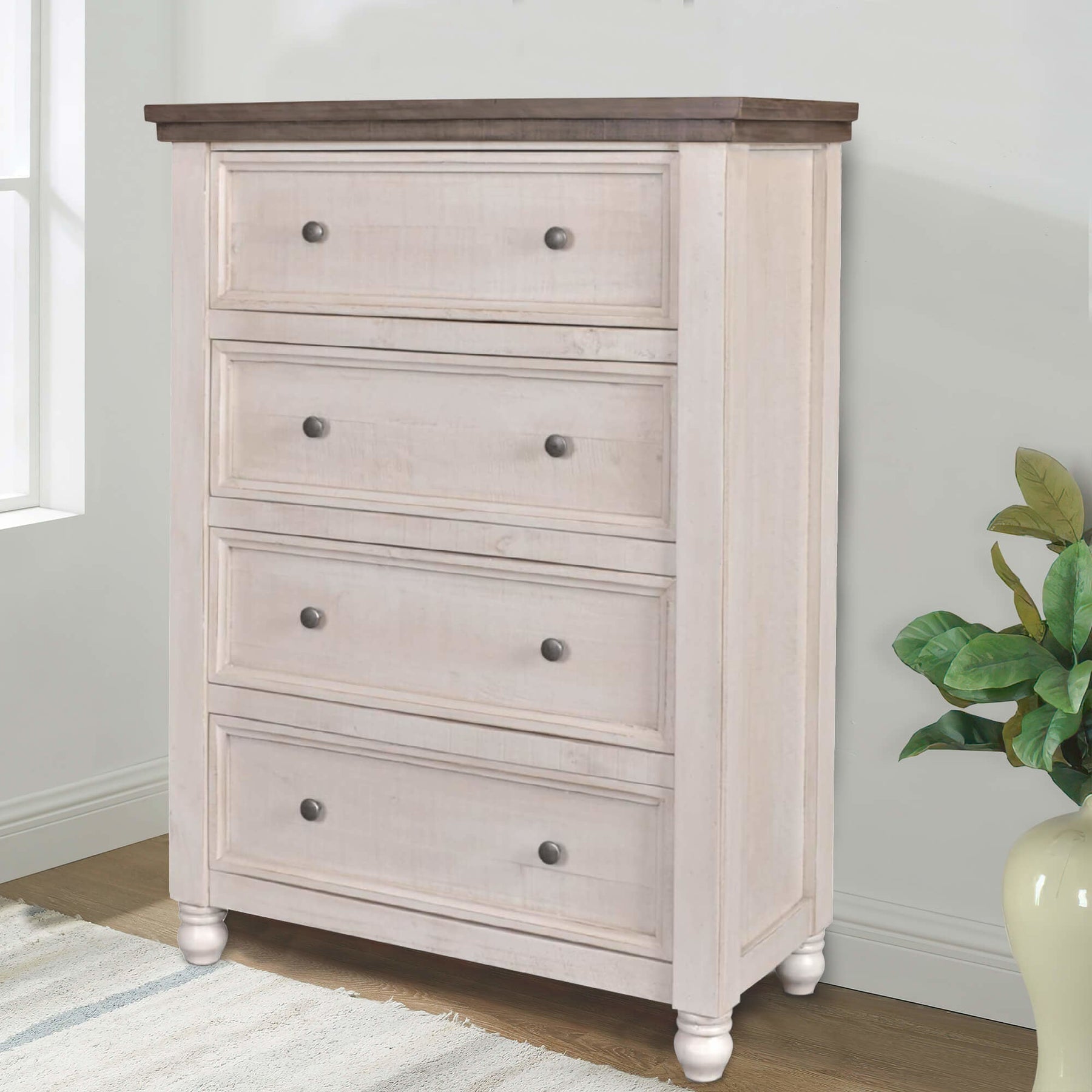 Sunset Trading Rustic French Bedroom Chest | 4 Storage Drawers