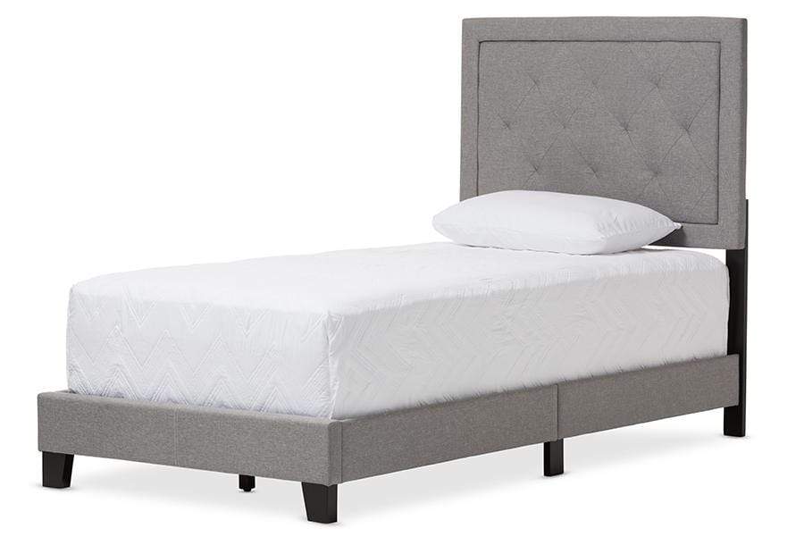 Paris Modern and Contemporary Grey Fabric Upholstered Twin Size Tufting Bed